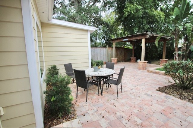 Furnished/Unfurnished 2/2, Attached 1 Car Garage, Single Family Home, Living Room, Family Room, Kitchen with Large Island & Breakfast Bar & Eat In Kitchen Area, Appliances Included: Stove, Refrigerator, Dishwasher, Microwave & Disposal, Hardwood Flooring/Tile Throughout Home, Garage Utility with Washer & Dryer Included, Open Patio with Pavers & Covered Pergola with Electricity, Irrigation System, Fenced, Pets Okay, No Smoking, Lawn Care, Fertilization & Pest Control Included, Year Built: 1940/ 1449 Sqft.